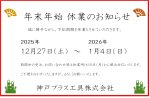 2025年12月10日 / 最終更新日 : 2025年12月10日 kptuser 店舗情報企業情報休業のご案内 年末年始休業のお知らせ 誠に勝手ではございますが、下記日程にて休業させて頂きます。 期間中の受注、お問い合わせ等は休業明けの1月5日(月)から順次対応いたします。 ご不便をおかけいたし […]